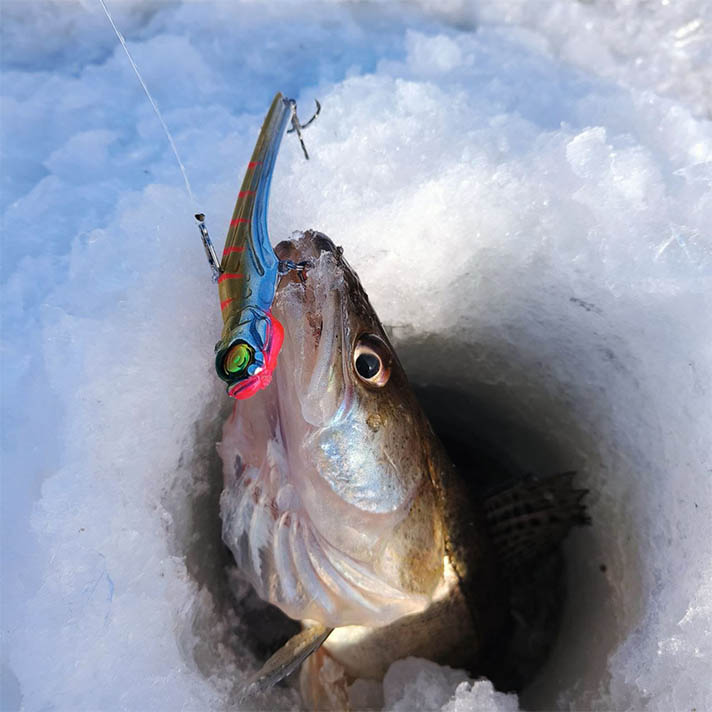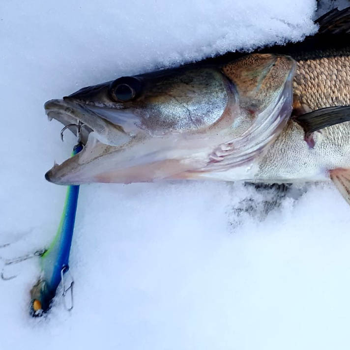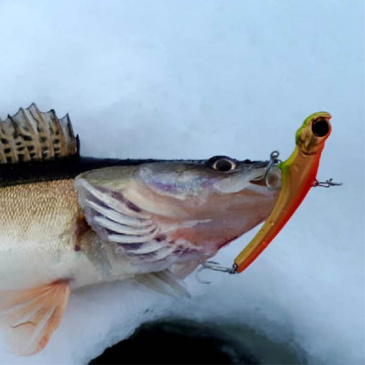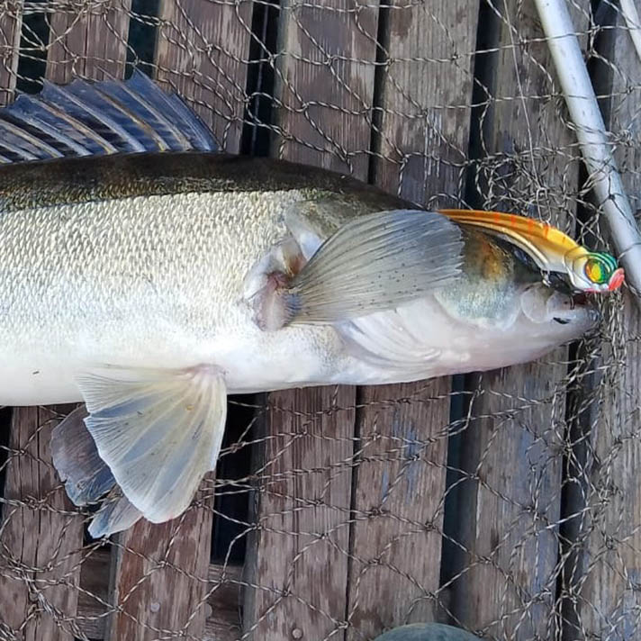 Основная подача, которую использую сам – медленный подъем на вытянутую руку. Достаточно долгая пауза в верхней точке, далее короткий сброс с “кладкой виба в горизонт” или небольшим планером в сторону. Подбирается по месту и активности судака.