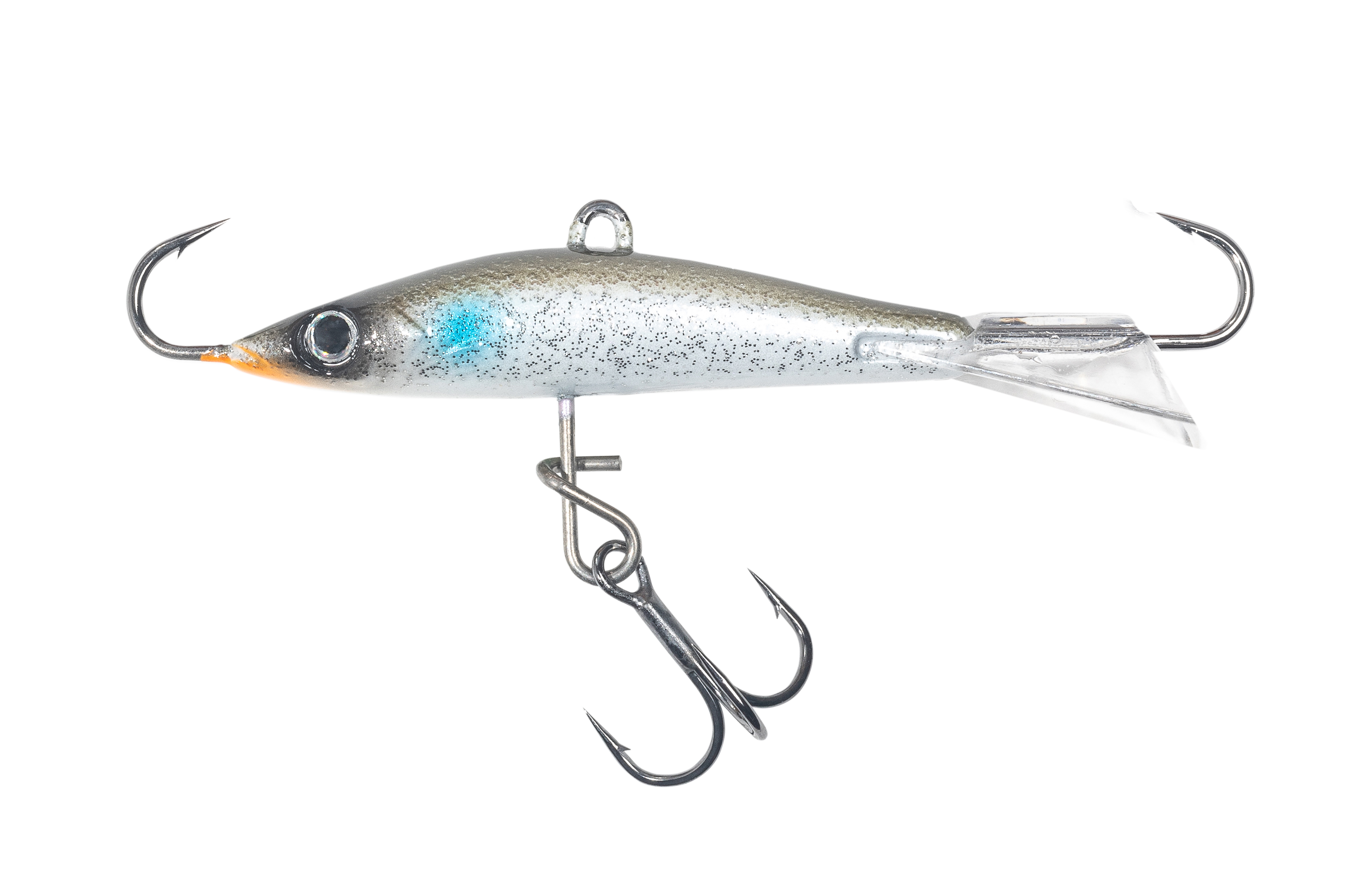 Длина тела ANCHO 50 с хвостом, до начала выхода крючка – 50 мм. Полный размер, с крючками — 63 мм.